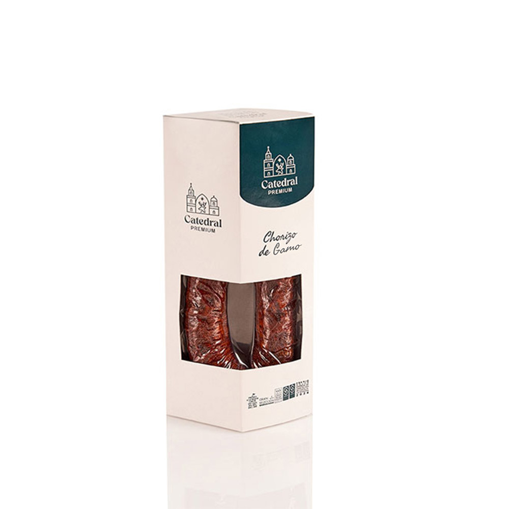 Una versión con carácter. El chorizo de gamo picante es una pieza intensa y diferente, con un punto de picante que realza el sabor natural de la carne de caza. Elaborado de forma artesanal y sin aditivos, en formato estuchado.