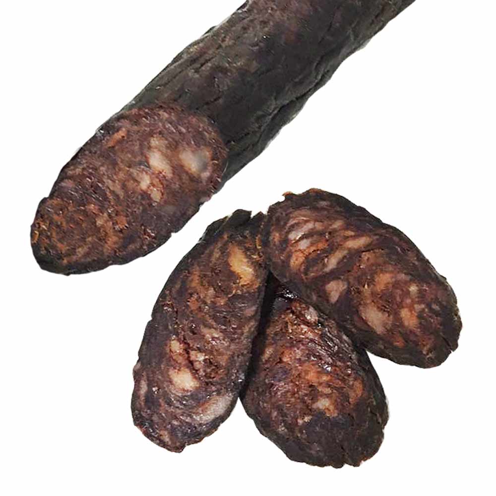 Una propuesta diferente y llena de sabor. Esta morcilla de ciervo curada mantiene la esencia del embutido tradicional, con el carácter noble de la carne de caza. Curación lenta, ingredientes naturales y una textura que la hace única. Ideal para paladares curiosos.